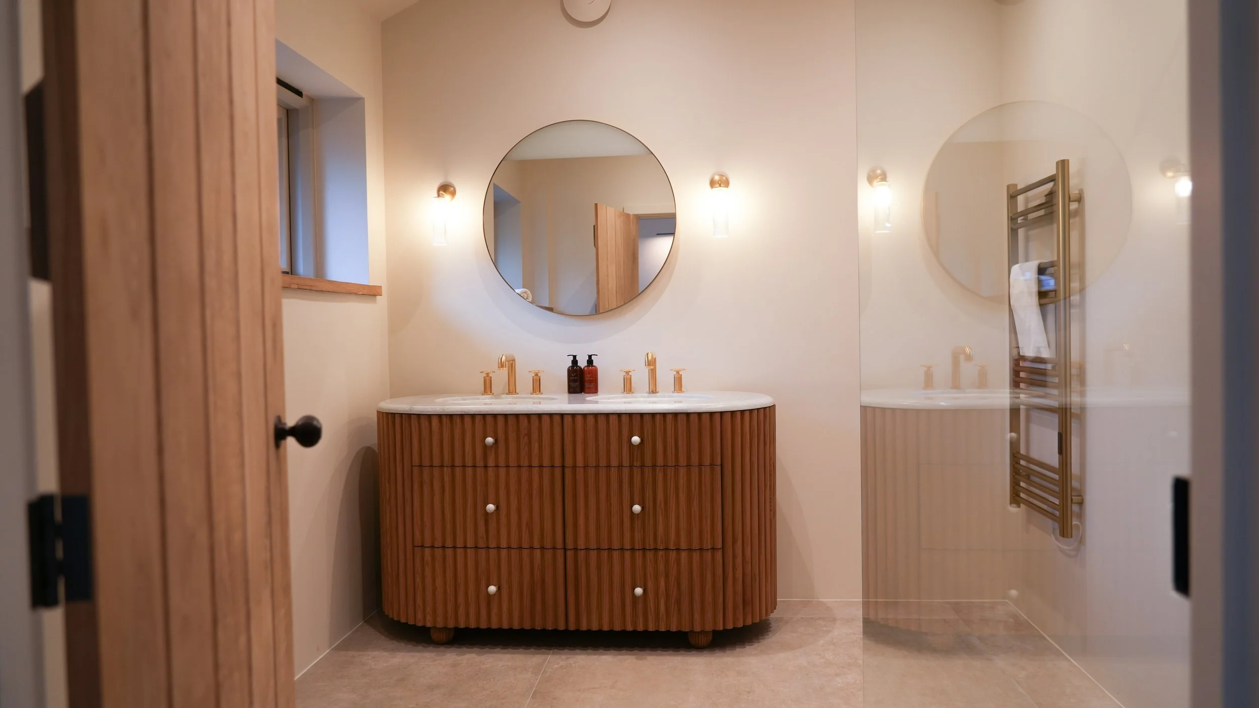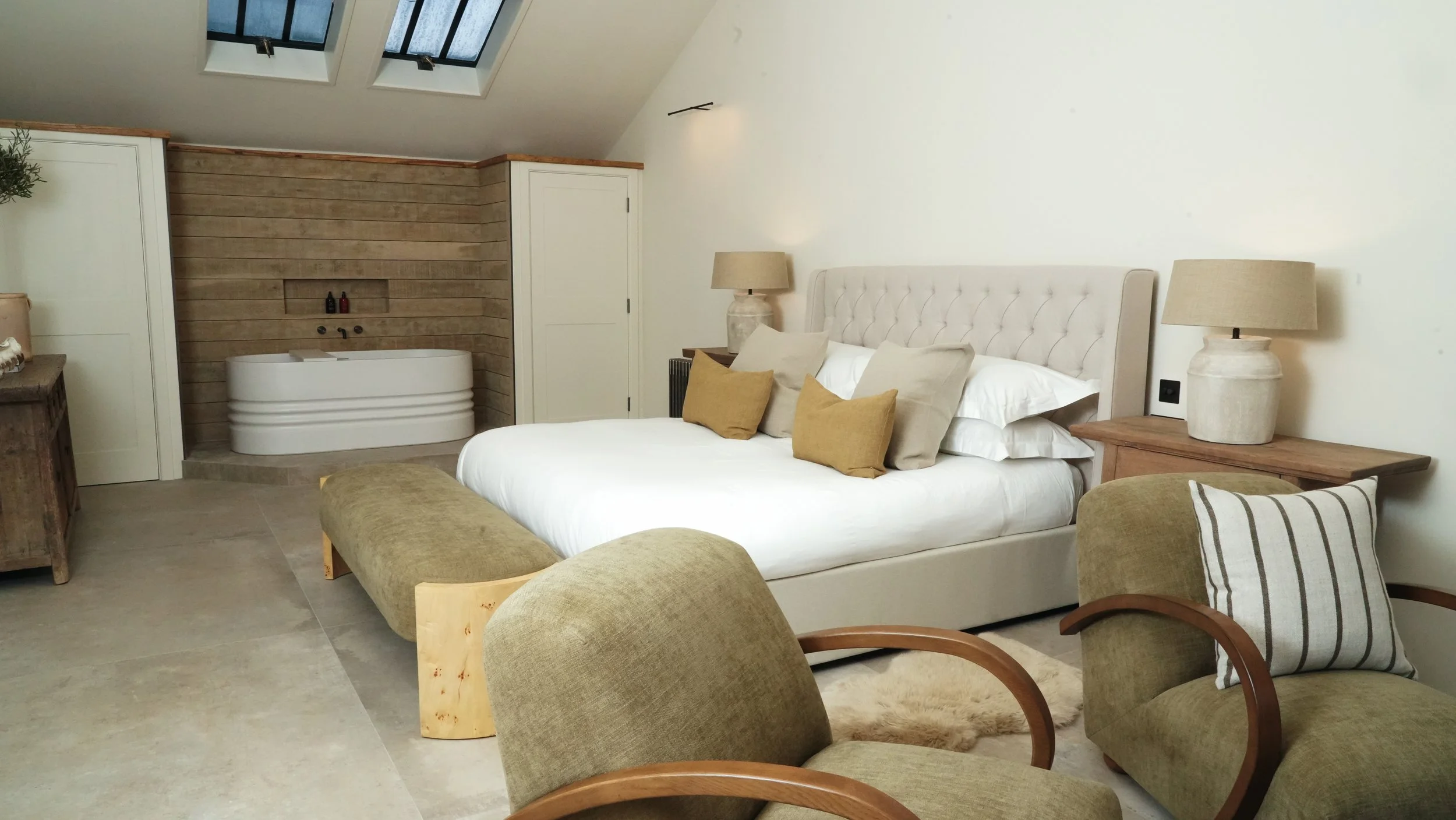 Brand new in December 2025, The Drama Studio is a spacious, open-plan ground floor apartment for two. It features with a freestanding bath in the bedroom and separate en-suite bathroom with double vanity and shower. Located in the heart of Moreton-in-Marsh in The Cotswolds, this luxury property is interior-designed by Cotswold Grey. This property is adjacent to multiple other apartments in a converted Cotswold stone school house. Should you require additional capacity for your party you may wish to book multiple properties.